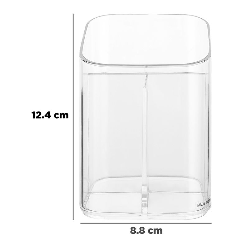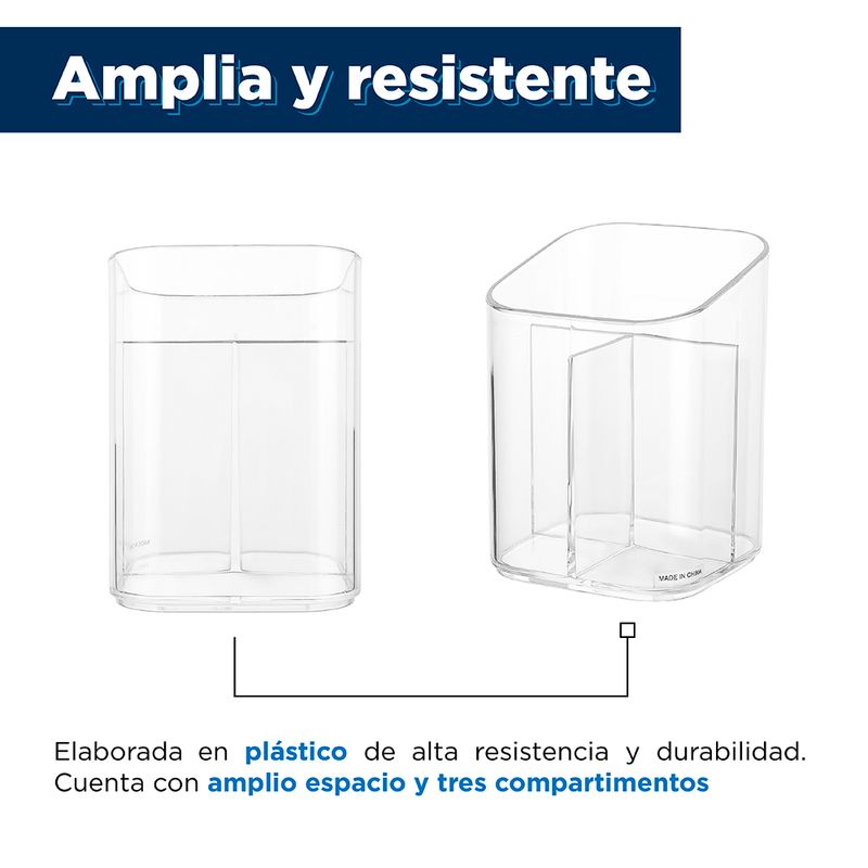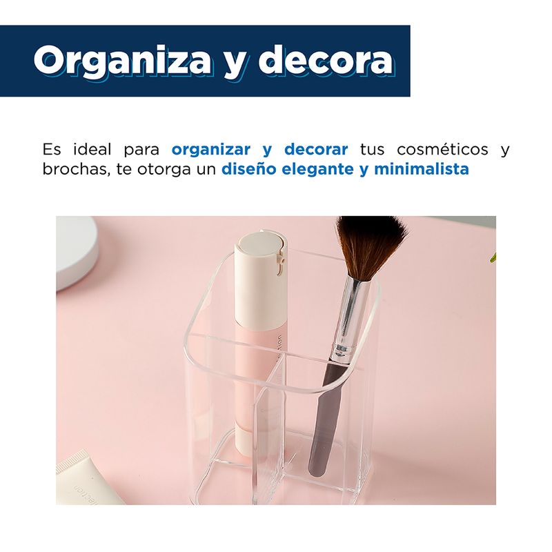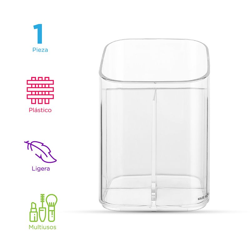 Organizador De Escritorio, Lineal, Tamaño: 12.446X8.89X8.636CM. | Diseño transparente que te permite organizar tus objetos. | Hecho de plástico de alta calidad. | Con bordes pulidos y una superficie suave. | Multifuncional, ideal para organizar cosméticos y accesorios. Modo de uso: Usar para guardar, organizar y proteger sus objetos. Precauciones: Mantener alejado del fuego. No dejar caer. Evitar la colisión y presión. Los niños lo deben usar bajo supervisión de un adulto.