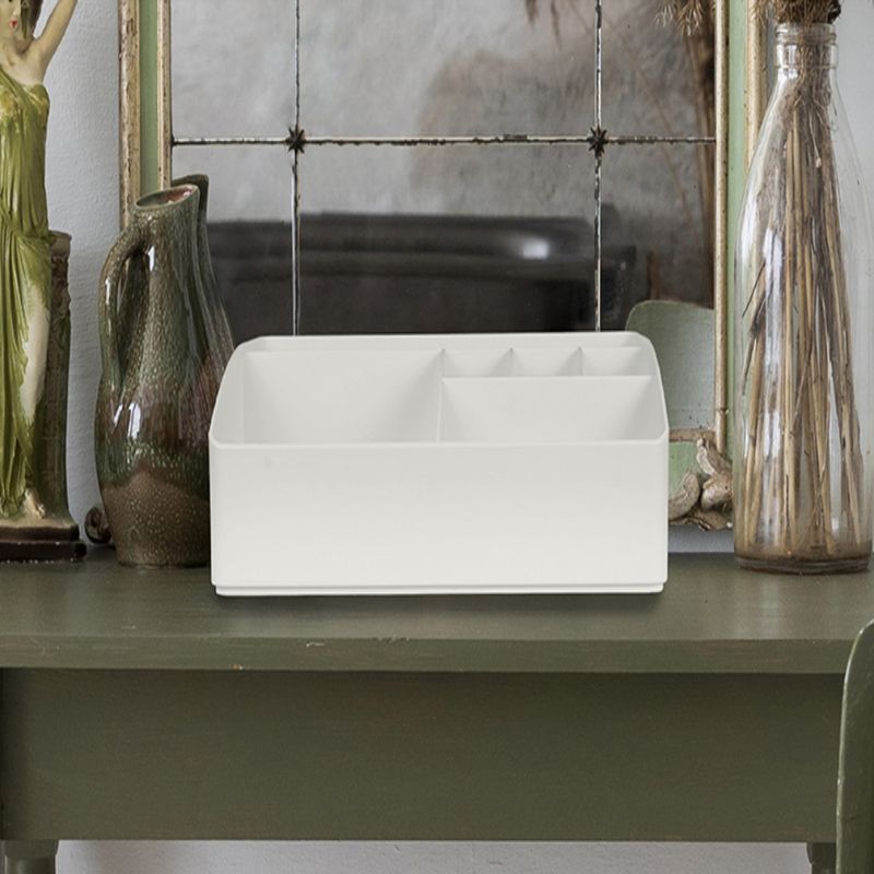 Miniso tiene para ti este practico organizador de maquillaje ¡Almacena y organizador tus cosméticos! | Elaborado en plástico de alta resistencia y gran durabilidad. | Te otorga un diseño en forma rectangular con detalle de 6 compartimentos para almacenar gran variedad de cosméticos como labiales, rubores, polvos compactos, paletas de sombras, brochas, iluminadores y accesorios de otro tipo como aretes, pulseras o accesorios pequeños ¡Dale el uso que requieras! | Tamaño 24.1x17.9x8.2 cm. | Organiza y mantén tus cosméticos a la mano ¡Sera el complemento perfecto para tu tocador! ¡No sabias que lo necesitabas hasta que lo encontraste aquí! Modo de uso: Almacenar variedad de cosméticos y/o joyas. Precauciones: No raspar con objetos duros. Mantener alejado del fuego y guardar en un lugar fresco y ventilado. Frágil, manipular con cuidado. Mantener fuera del alcance de los niños