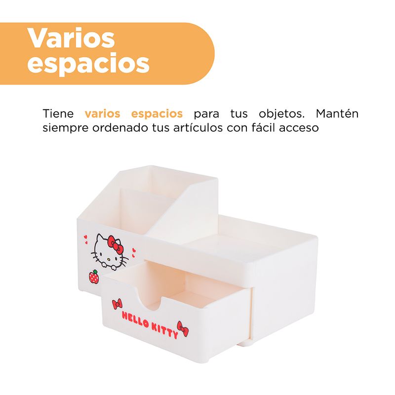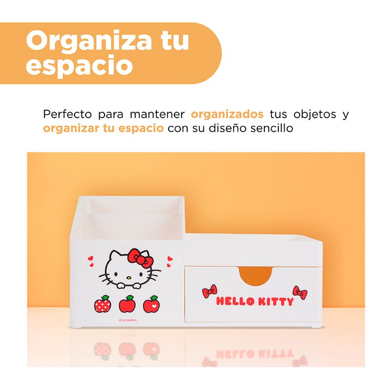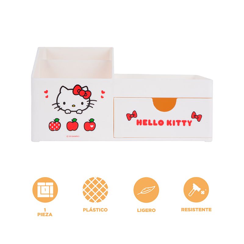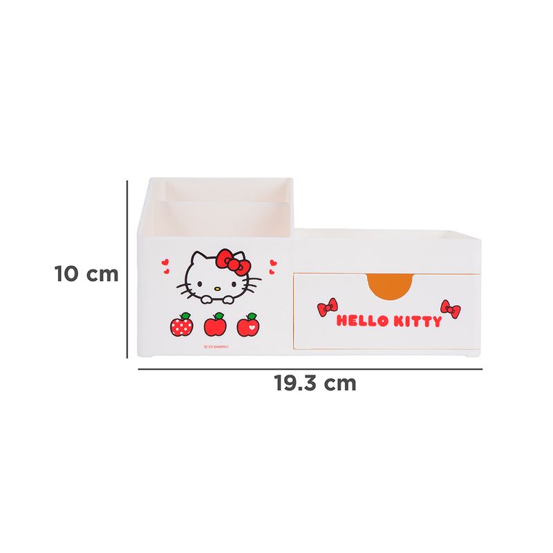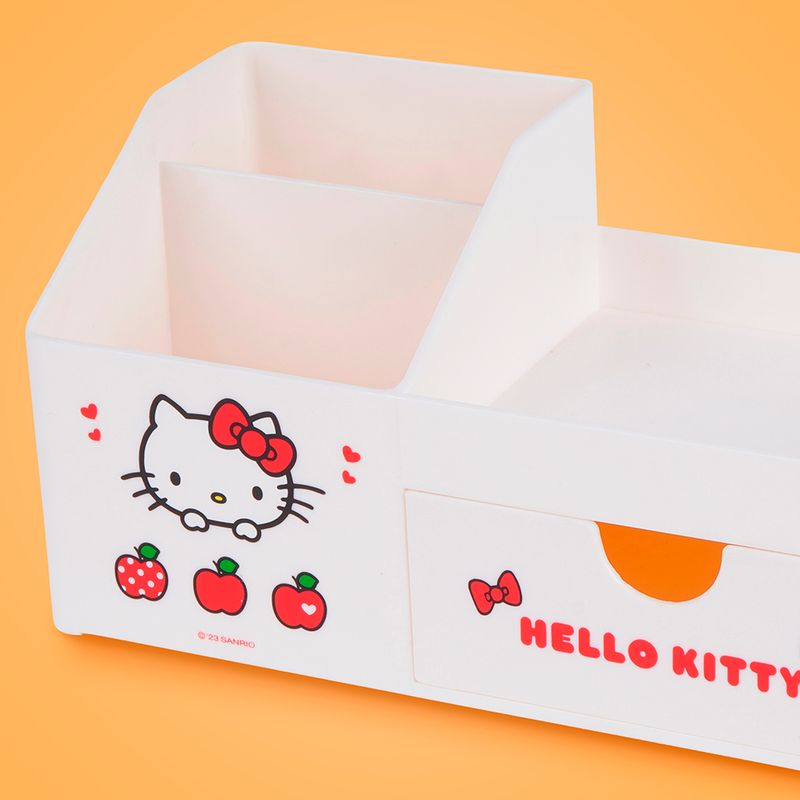 ¡Solo en Miniso encontraras los mejores artículos de la entrañable colección de Sanrio! Adquiere este lindo organizador de escritorio de la dulce Kitty ¡Perfecto para almacenar gran variedad de artículos y accesorios! | Elaborado en materiales sintéticos de alta resistencia y gran durabilidad. Modo de uso: Almacenar multiusos. Precauciones: Evitar la exposición a la humedad o la luz solar directa. Para el mantenimiento diario, limpiar suavemente con un paño húmedo. Mantener alejado del fuego y de objetos punzantes. Evitar contacto con productos químicos corrosivos. Los niños la deben usar bajo supervisión de un adulto.