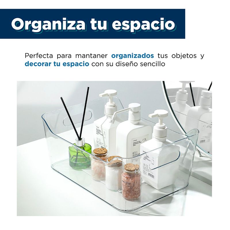 Miniso tiene este practico organizador ¡Perfecto para ordenar tus espacios! | Elaborado en plástico de alta resistencia y gran durabilidad. | Te otorga un diseño rectangular con detalle de asas en costados | Este organizador es perfecto para almacenar artículos de baño, oficina, cocina y hogar. Se adaptará a todas tus necesidades de almacenamiento gracias a su practico tamaño y diseño. Modo de uso: