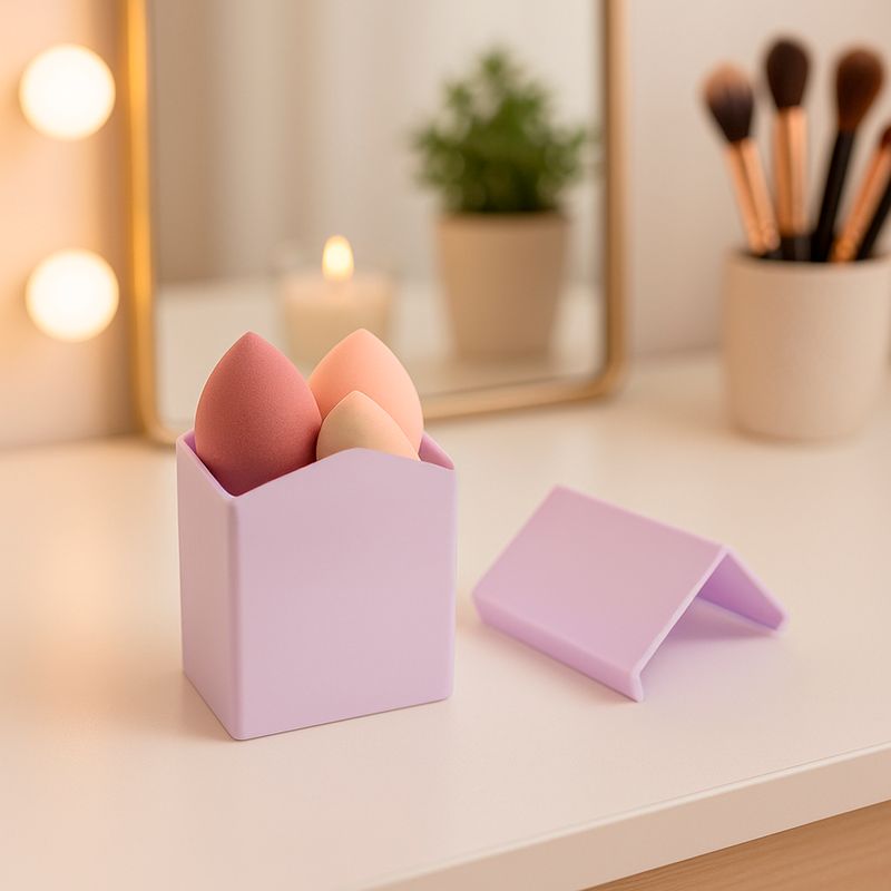 Miniso trae para ti este práctico Organizador Plastico para Esponjas de Maquillaje 2 Piezas.Modo de uso: