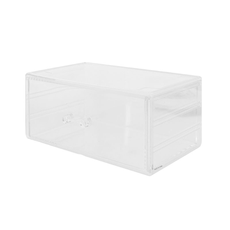 Miniso trae para ti este increíble organizador de escritorio con cajón ¡Perfecto para almacenar gran variedad de artículos y accesorios! | Elaborado en materiales sintéticos de alta resistencia y gran durabilidad. | Te otorga un lindo diseño en transparencia con cajón. Es perfecto para almacenar gran variedad de artículos como maquillaje, esponjas, aretes, perfumes y pulseras, también es practico como organizador para artículos de oficina como clips, borradores o cintas adhesivas ¡Dale el uso que requieras! | Tamaño 24x11 cm. Gracias a su practico tamaño y diseño podrás colocarlo en cualquier espacio y a su vez usarlo como un lindo elemento decorativo. | ¡Los mejores organizadores solo los encuentras aquí en Miniso!.Modo de uso: