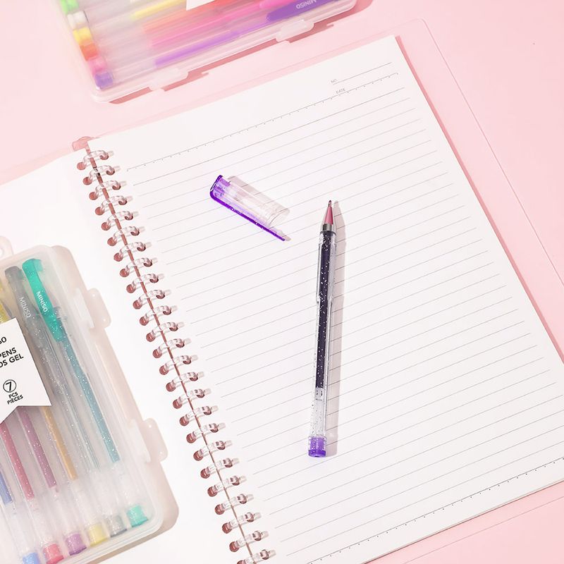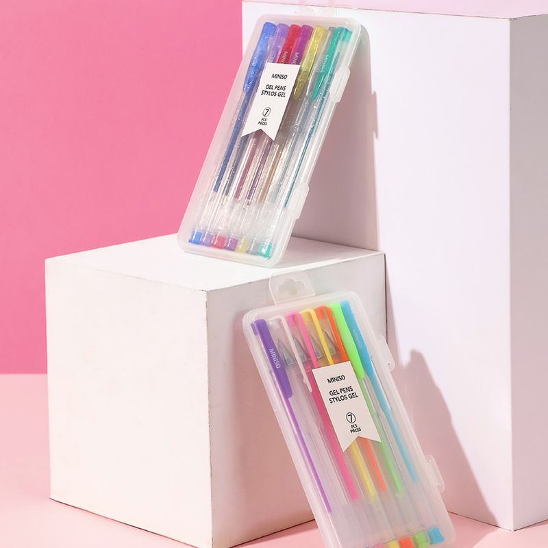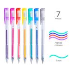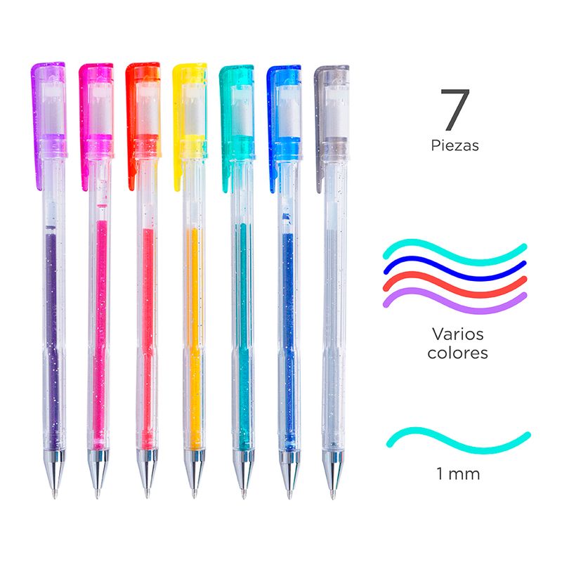 Paquete de Esferos Colores Pastel Brillante 7 Pzas Set de plumas de gel. | En 7 colores diferentes. | Vienen en un estuche de plástico. | Con diseño diamantado. | Incluyen una practica tapa. Modo de uso: Usar para escribir o decorar textos. Precauciones: Mantener alejado del fuego. Mantener fuera del alcance de niños menores de 5 años.