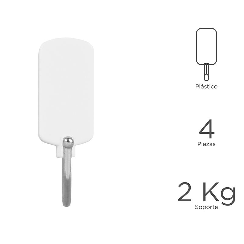 Paquete De Ganchos Rectangulas 4 Pzas| Cómodo paquete de 4 piezas. | Fáciles de poner. | Con pegamento resistente. | Peso máximo de 2 kg. | Para pegar en varias superficies. Modo de uso:
