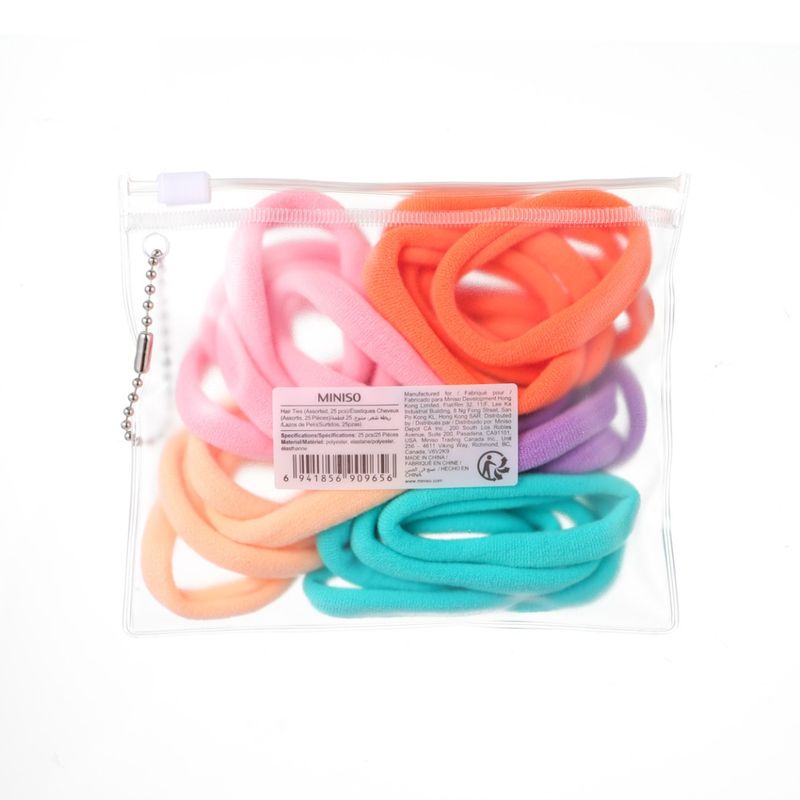 ¡En Miniso nos encanta consentirte con los mejores productos! Tenemos para ti este paquete de ligas mini para cabello con 25 piezas mix de Colores| Ideal para todo tipo de cabello. Modo de uso: Sujetar el cabello. Precauciones: No forzar para no romper. Mantener alejada del fuego. Los niños la deben usar bajo supervisión de un adulto
