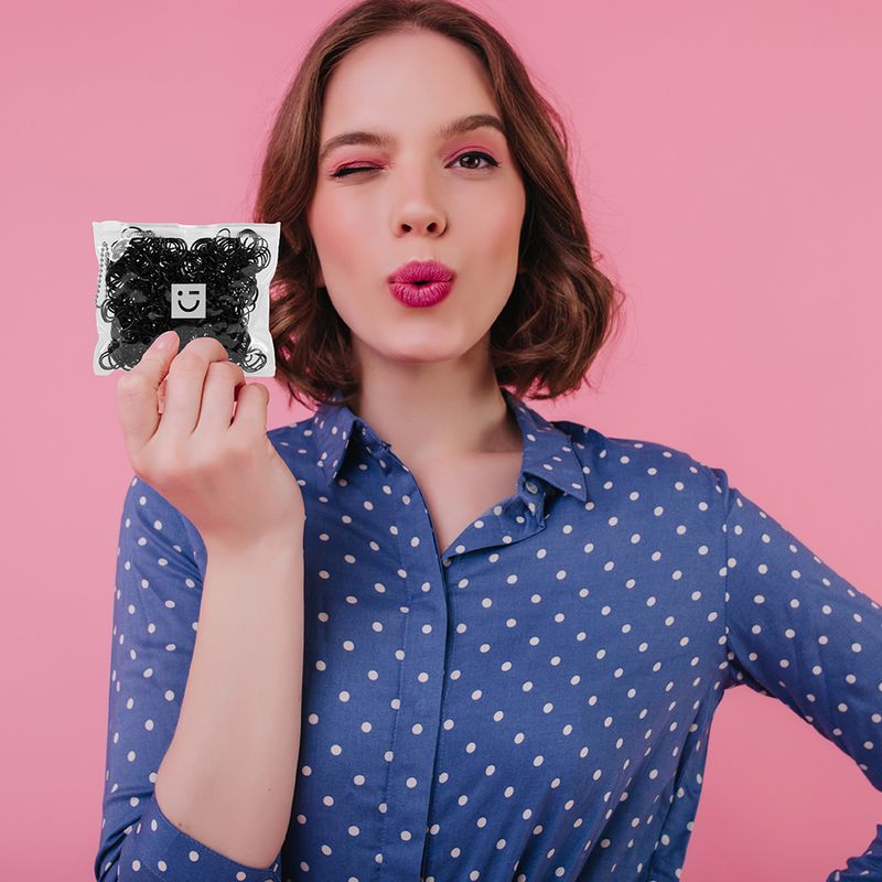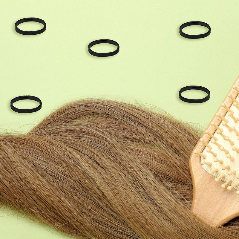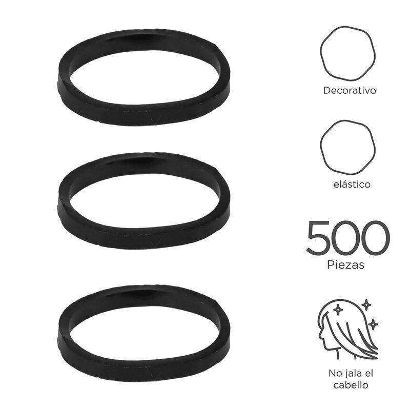 Miniso tiene para ti este paquete de ligas pequeñas para cabello color negro. | Elaboradas en materiales textiles. | Diseño plano y ancho. | Contiene 500 ligas. | Estas ligas son perfectas para todo tipo de peinados. Modo de uso: Sujetar el cabello. Precauciones: No forzar para no romper. Mantener alejada del fuego. Los niños la deben usar bajo supervisión de un adulto