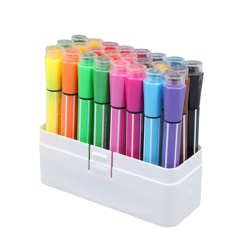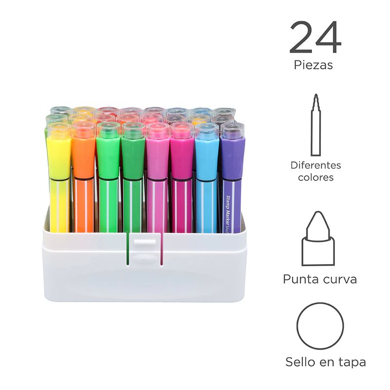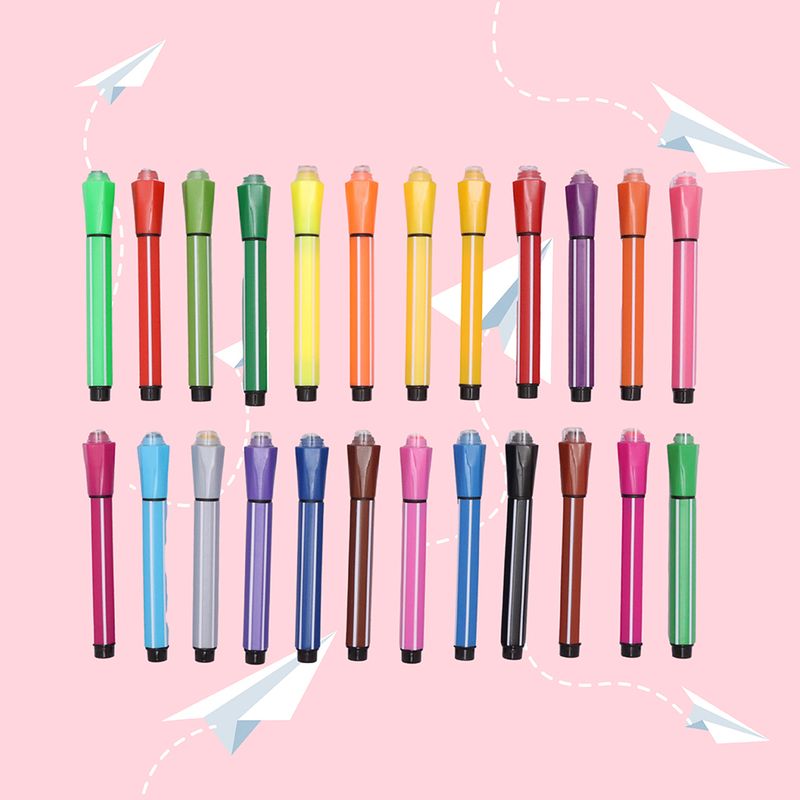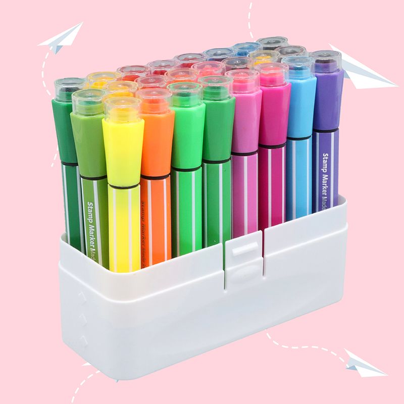 1. incluye 24 Marcadores de acuarela de gran capacidad, cada uno con un sello de color 2. 24 colores brillantes cubren la mayoría de las necesidades diarias de dibujo. Instrucciones de uso: