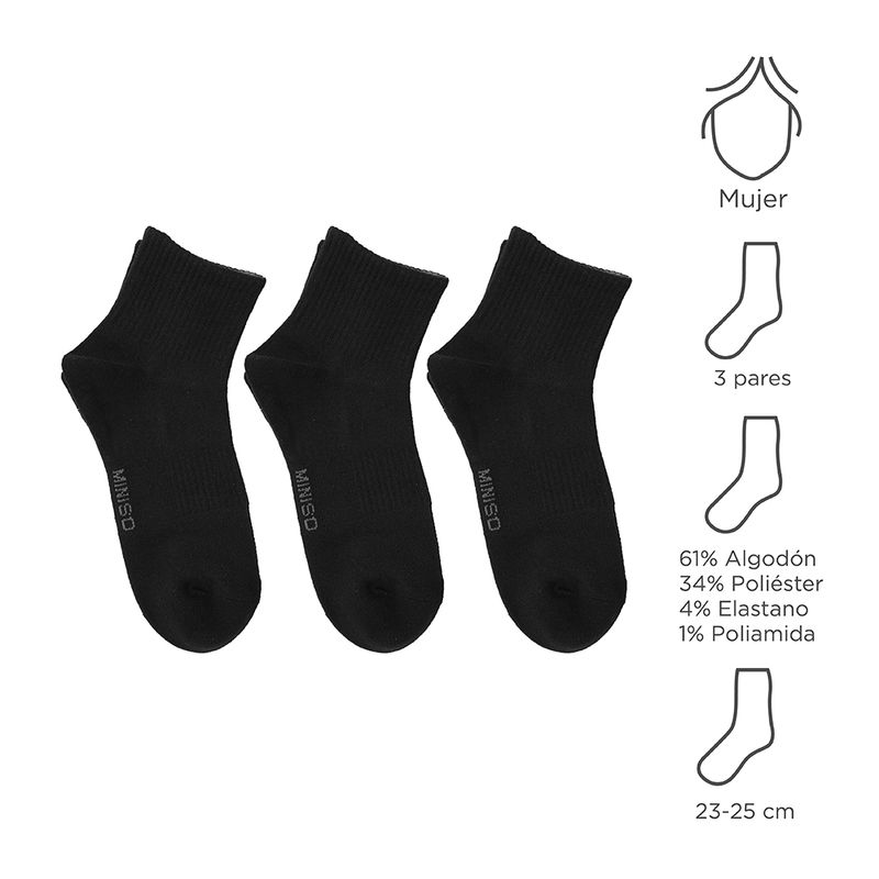 Paquete De Medias Atleticas, Para Mujer 3 Pares, Negros, Cómodo paquete de 3 pares. | Corte bajo. | Cómodos de usar. | No dejan marcas. | Dejan respirar tu piel. Modo de uso: