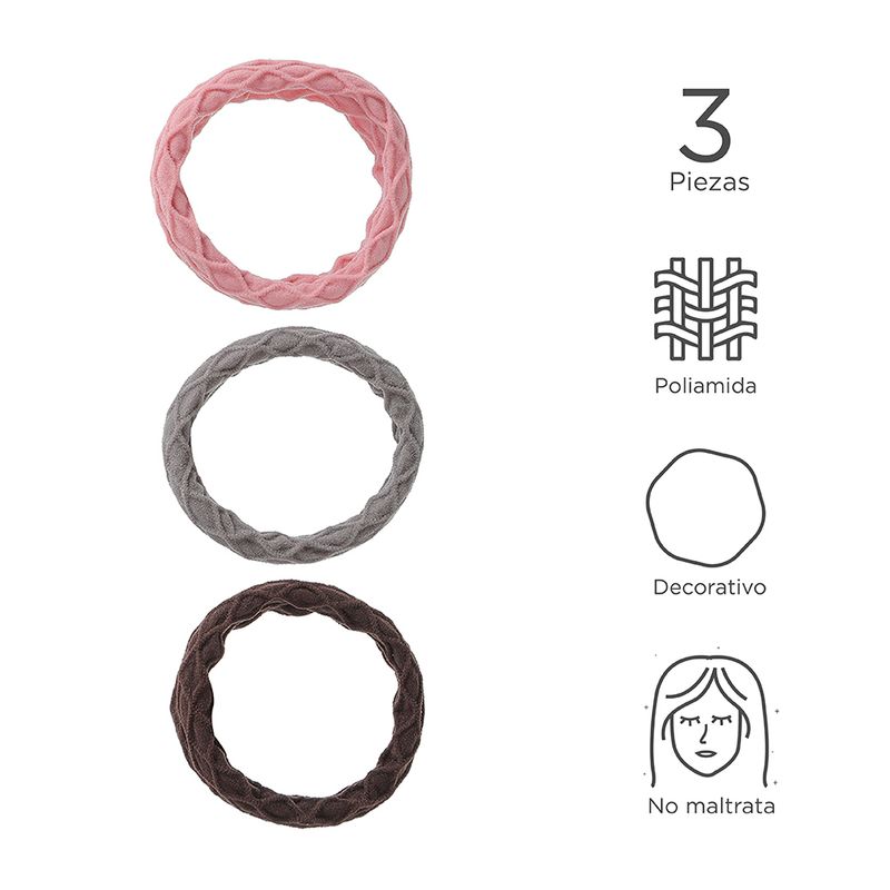Amárrate el cabello y prueba nuevos looks con este Paquete De Ligas Para Cabello Diseño De Rombos Multicolor 3 Piezas. | El cabello recogido es muy cómodo y se te verá el rostro completo. | Hechas con materiales elásticos de la más alta calidad. | Cómodo paquete con 3 piezas. | Con diseño de rombos. Modo de uso: Sujetar el cabello. Precauciones: No forzar para no romper. Mantener alejada del fuego. Los niños la deben usar bajo supervisión de un adulto