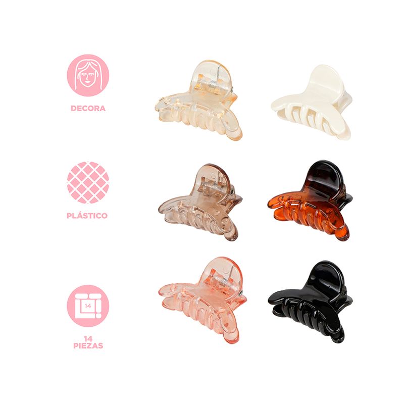 Miniso tiene para ti este Paquete de broches para cabello ¡Dale un toque de color a tus peinados! | Contiene 14 pinzas. | Elaborados en acero de alta resistencia.| ¡Ideales para todo tipo de cabellos! Modo de uso: Sujetar el cabello. Precauciones: Mantener alejada del fuego. Los niños la deben usar bajo supervisión de un adulto