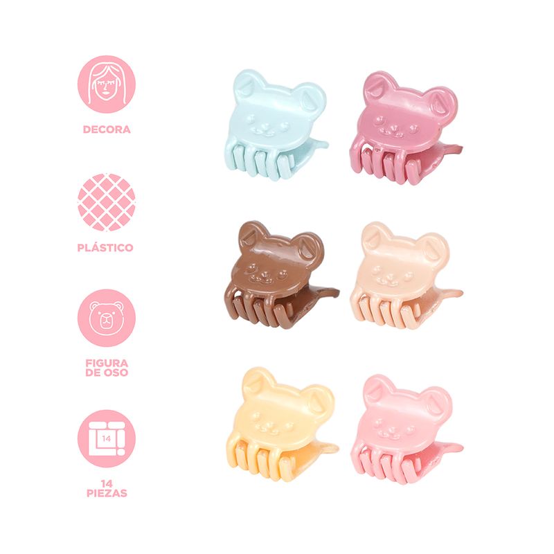 Miniso tiene para ti este Paquete de broches para cabello ¡Dale un toque de color a tus peinados! | Contiene 14 pinzas. | Elaborados en acero de alta resistencia.| ¡Ideales para todo tipo de cabellos! Modo de uso: Sujetar el cabello. Precauciones: Mantener alejada del fuego. Los niños la deben usar bajo supervisión de un adulto