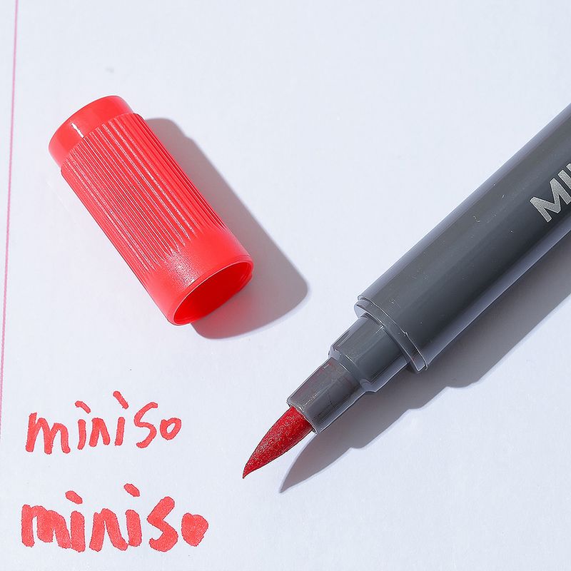 1. Diseño clásico de barril negro 2. Doble cabezal con una punta de pincel y una punta fina 3. El color de la tapa del bolígrafo es consistente con el color de la tinta, conveniente para que usted elija el que necesita. Modo de uso: Abra el producto por medio de la tapa y escriba sus notas preferidas, luego tape el marcador. Precauciones: Mantener en un lugar limpio y seco, alejado del fuego, sustancias químicas y humedad. Los niños lo deben usar bajo la supervisión de un adulto.
