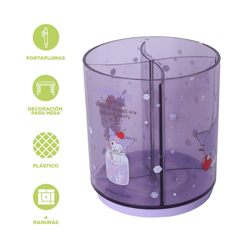 Miniso trae para ti este lindo Portaboligrafo Giratorio de 4 Rejillas Kuromi Serie Sanrio.Instrucciones de uso: