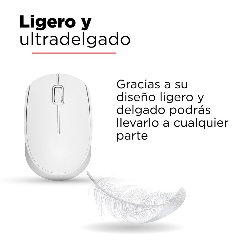 Raton Inhalambrico, Blanco Mouse inalámbrico. | Elaborado en material sintético color blanco. | Cuenta con rueda de desplazamiento. | Utiliza este mouse de manera inalámbrica. |Realiza tus actividades con la comodidad y practicidad de este mouse. Modo de uso: Empujar el compartimiento de la batería hacia abajo e instalar 1 batería AA de acuerdo con la polaridad que se muestra en el mouse. Insertar el receptor y use el mouse después de unos segundos después de la instalación automática en la computadora. Precauciones: Transmisión de 2,4G Hz. 1600DPI. Temperatura: 0 ? ~ 40 ? Humedad: 85 % ~ 90 RH. Mantener fuera del alcance de los niños