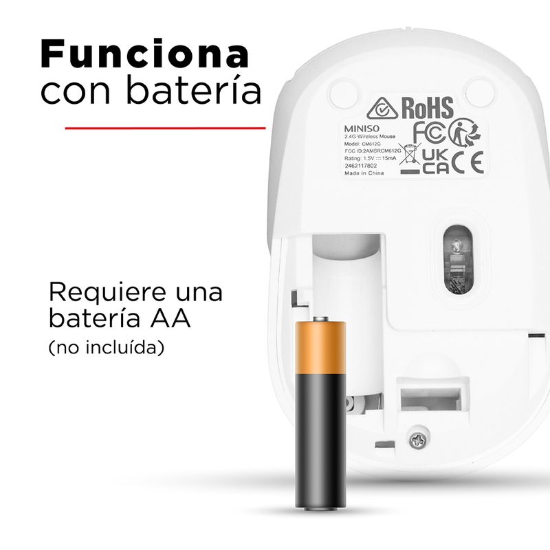. Modo de uso: Empujar el compartimiento de la batería hacia abajo e instalar 1 batería AA de acuerdo con la polaridad que se muestra en el mouse. Insertar el receptor y use el mouse después de unos segundos después de la instalación automática en la computadora. Precauciones: Transmisión de 2,4G Hz. 1600DPI. Temperatura: 0 ? ~ 40 ? Humedad: 85 % ~ 90 RH. Mantener fuera del alcance de los niños