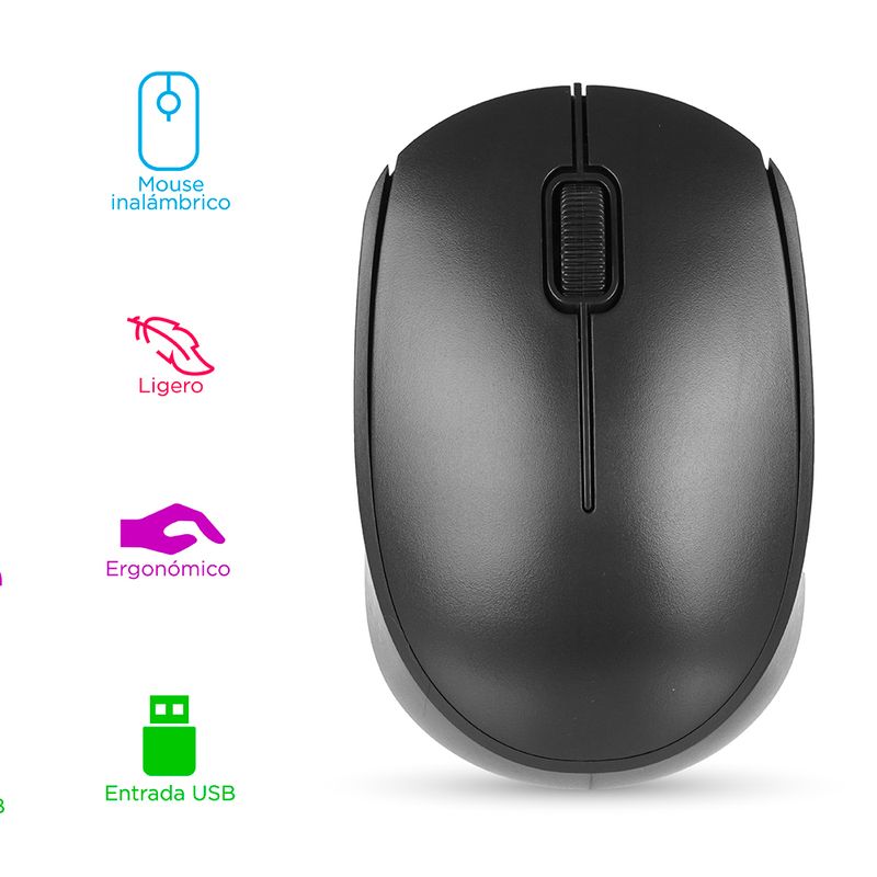 Raton Inhalambrico, Negro Mouse inalámbrico. | Elaborado en material sintético color negro. | Cuenta con rueda de desplazamiento. | Utiliza este mouse de manera inalámbrica. |Realiza tus actividades con la comodidad y practicidad de este mouse. Instrucciones de uso: