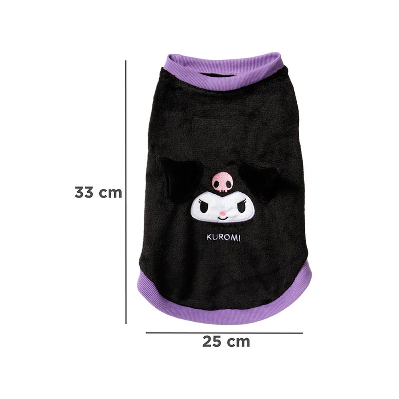 ¡Solo en Miniso encontraras los mejores artículos de la entrañable colección de Sanrio! Adquiere esta linda camisa para mascotas de la traviesa y caprichosa Kuromi ¡Ideal para perros y gatos! | Confeccionado en poliéster de alta resistencia con detalles bordados a contraste. | Te otorga un lindo diseño en tonalidad negra con detalles estampados a contraste y bordes elásticos ¡Perfecta para que tu amiguito peludito no sienta incomodidad! | Tamaño 33x25 cm ¡Dale un estilo autentico a tu mascota! | ¡Los mejores accesorios para los consentidos de la casa solo los encuentras aquí en Miniso!.Instrucciones de uso: