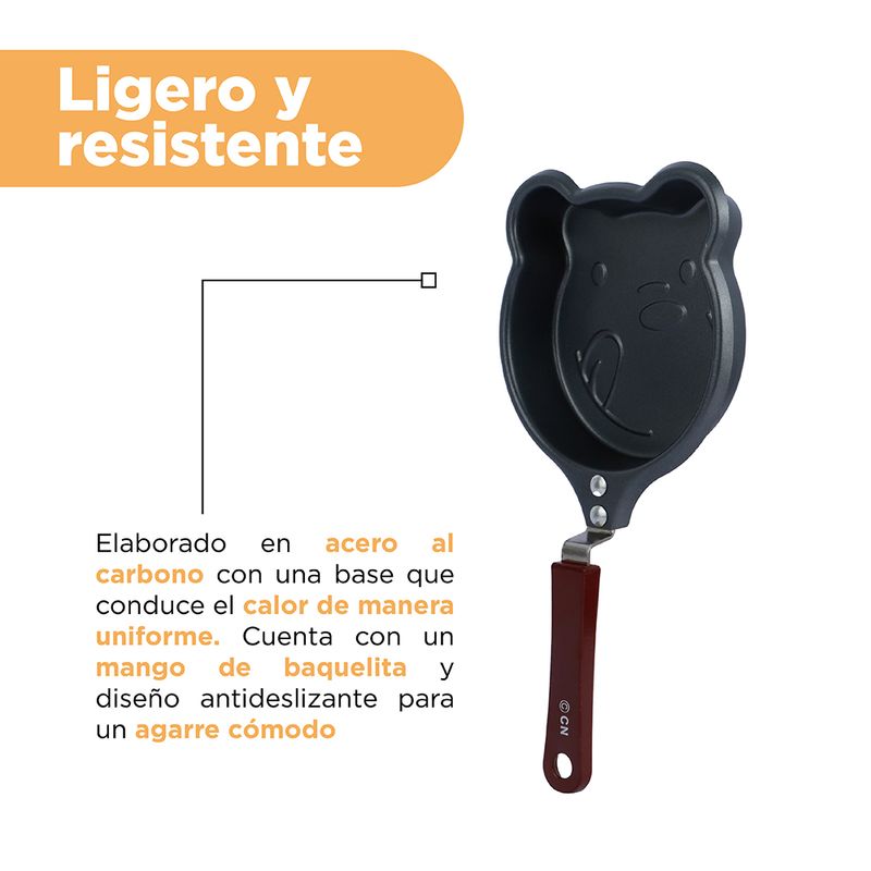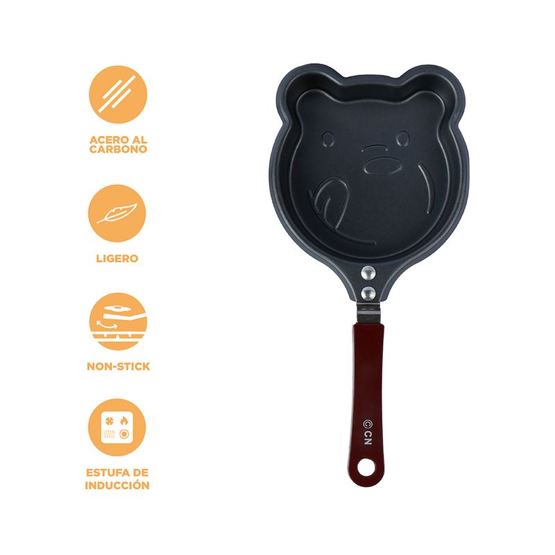 ¡Llévate este lindo sartén del burbujeante e hiperactivo Pardo! | Elaborado en materiales de alta resistencia y durabilidad. | Se puede utilizar en una estufa de inducción o directamente en el fuego. | Tamaño 27x13 cm. | Un accesorio ideal para tu cocina con un diseño adorable. Modo de uso: Engrasar y cocinar o freír alimentos dentro del sartén. Precauciones: No utilizar objetos afilados como estropajos de acero o alambre para limpiar la sartén, para evitar dañar el revestimiento antiadherente. Usar el fuego bajo para evitar quemar el mango. Temperatura adecuada: -10°C a 200°C. Apto para estufa convencional o de inducción. Mantener fuera del alcance de los niños.