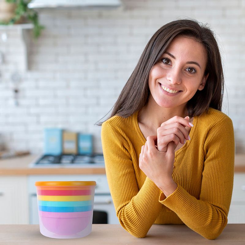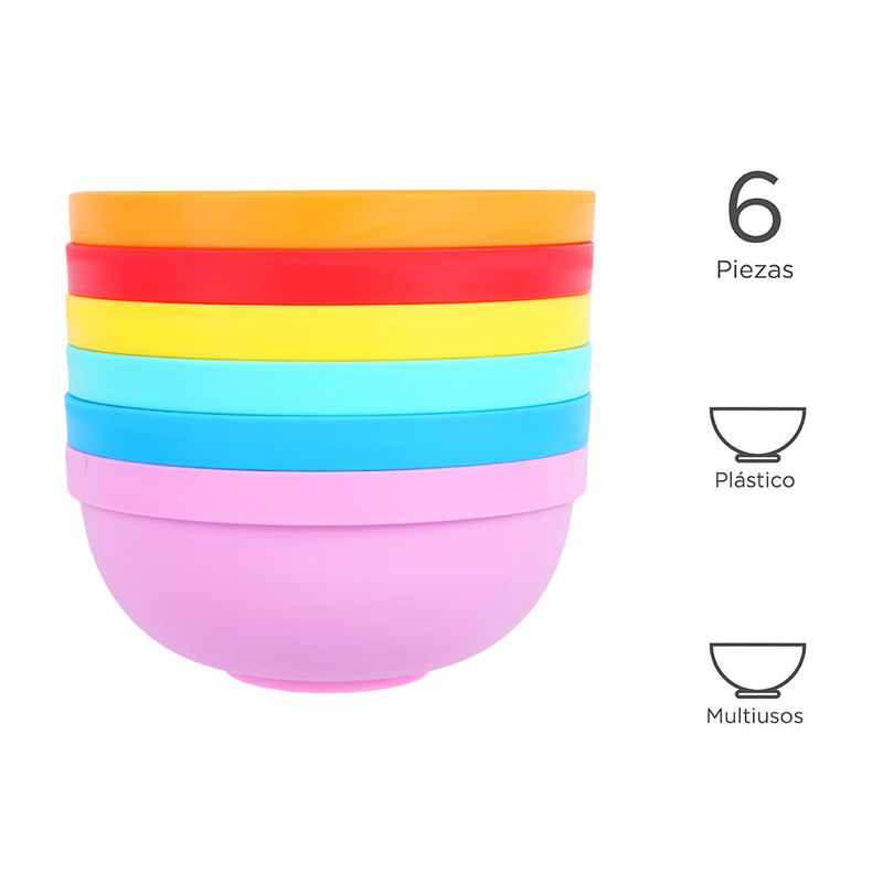 Set de tazones multicolor. | Elaborados en plástico de alta resistencia y calidad alimentaria. | Tamaño 6x11 cm. | Contiene 6 tazones. | Vienen en un practico recipiente de plástico con tapa, fáciles de almacenar. Modo de uso: