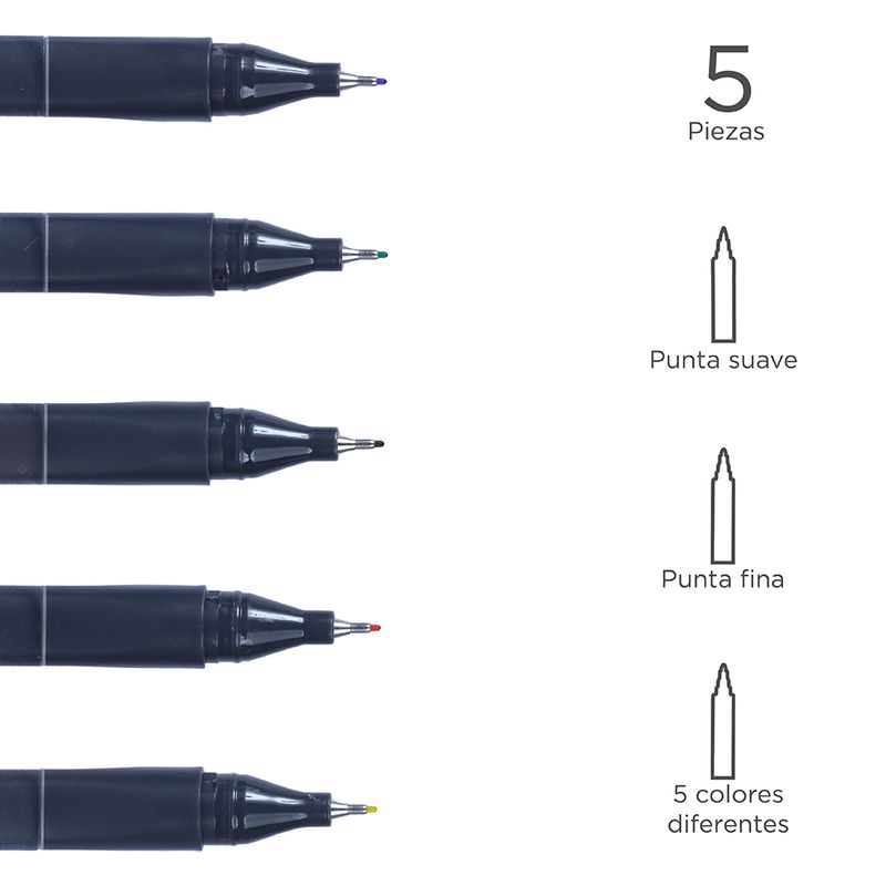 Paquete de plumas de gel. | Contiene 5 plumas. | Color de tinta: amarillo, naranja, verde, azul y morado. | Punta 0.44 mm te proporciona trazos finos y precisos. | Estas plumas te brindan una experiencia agradable de escritura. Modo de uso: Usar para escribir. Precauciones: Mantener lejos de fuentes de calor. No morder. Los niños lo deben usar bajo supervisión de un adulto.