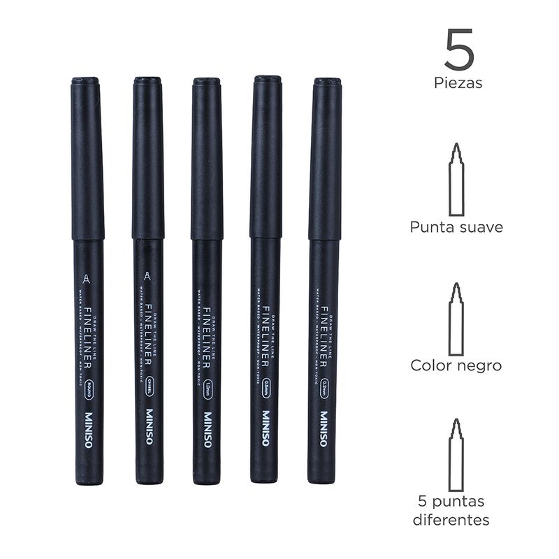 Paquete de 2 plumines y 3 plumas. | Tinta en color negro. | Puntas de 0.2 mm, 0.5 mm, 1.0 mm: brindan trazos precisos y una experiencia de escritura agradable y fina. | Estas plumas son a prueba de agua. | Se adaptaran a todas tus necesidades de escritura. Modo de uso: Usar para escribir. Precauciones: Mantener con la tapa para evitar deterioro. Mantener alejado del fuego, mantener alejado de la humedad. No morder. Los niños lo deben usar bajo supervisión de un adulto.