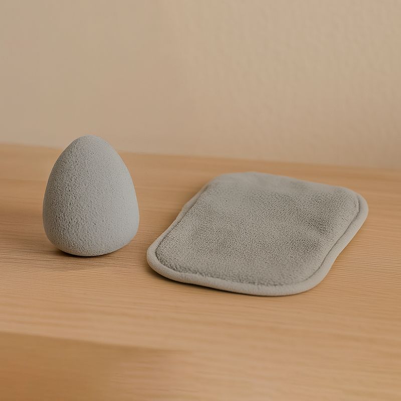 Set de Paño y Esponja Limpiadora Facial Serie Silvery Gray