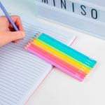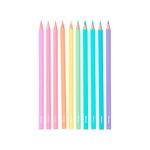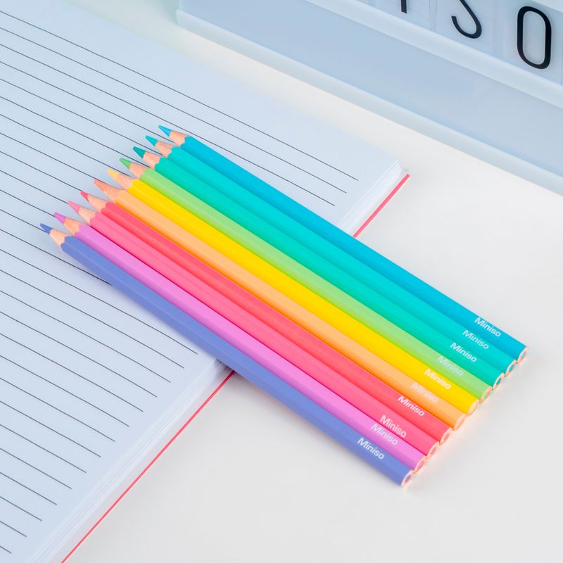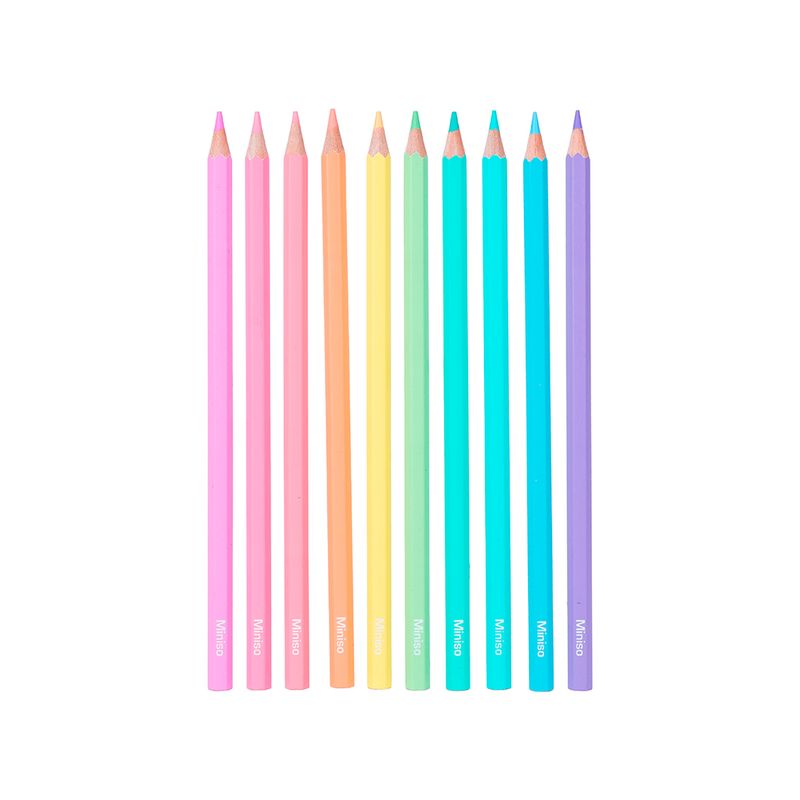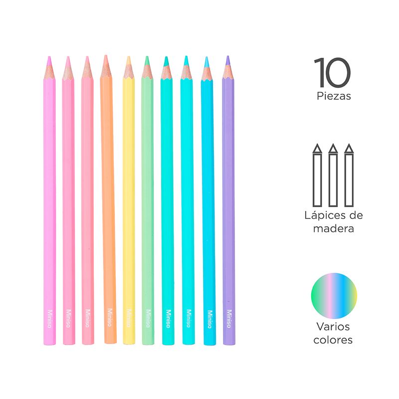 10 lápices de madera de diferente color. Modo de uso: Usar para escribir o decorar textos. Precauciones: Mantener alejado del fuego. No apto para niños menores de 3 años. No morder. Los niños lo deben usar bajo supervisión de un adulto.
