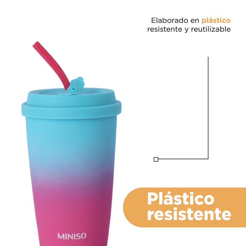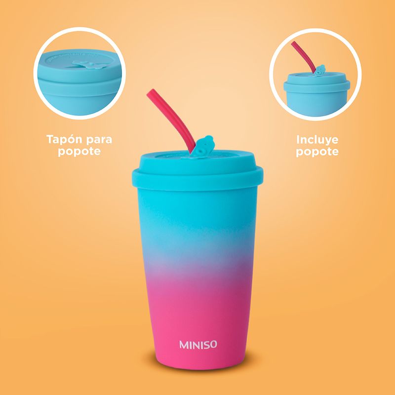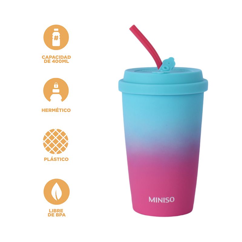 Miniso Trae para ti este Lindo Vaso de Ceramica de 400 Ml con Tapa y Pitillo.