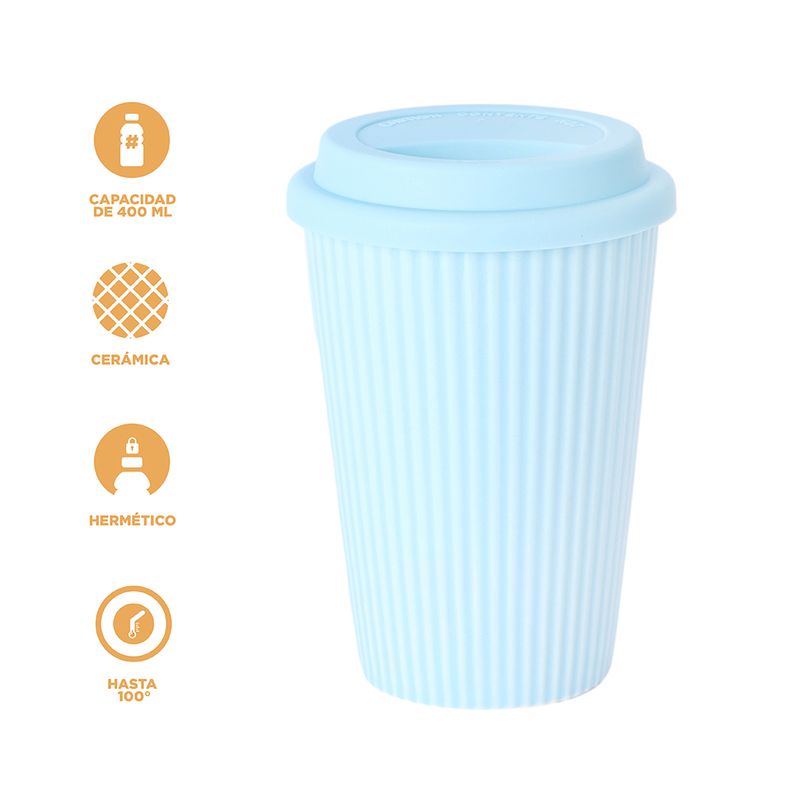 Miniso trae para ti esta linda Taza de Ceramica con Tapa 400 Ml Azul.