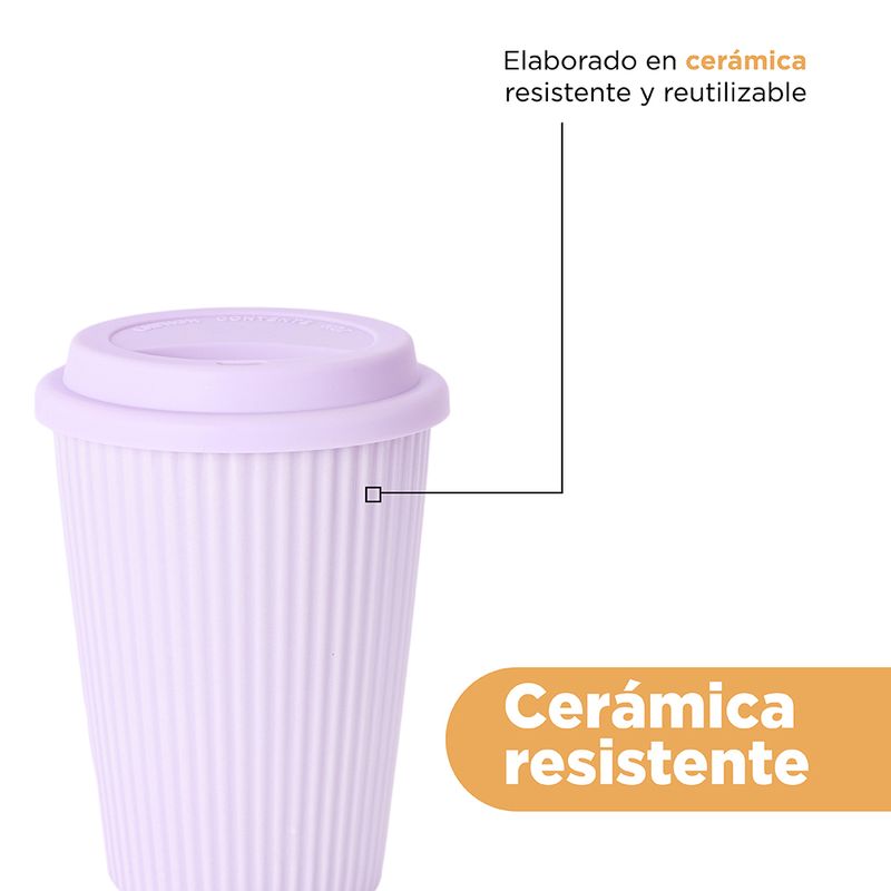 Taza de Ceramica con Tapa 400 Ml Purpura