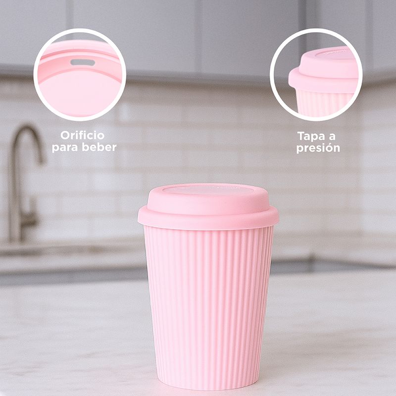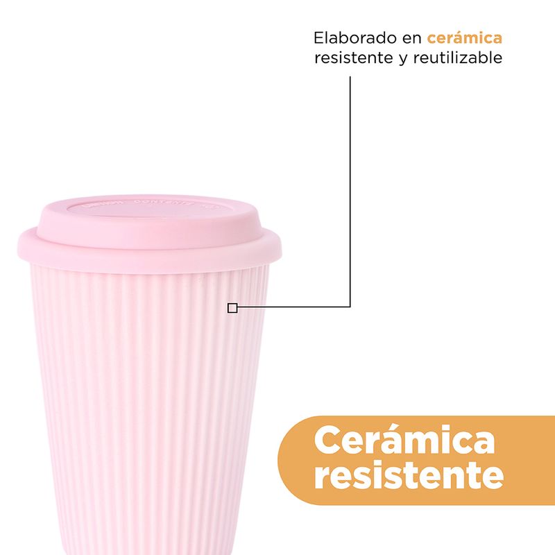 Taza de Ceramica con Tapa 400 Ml Rosa