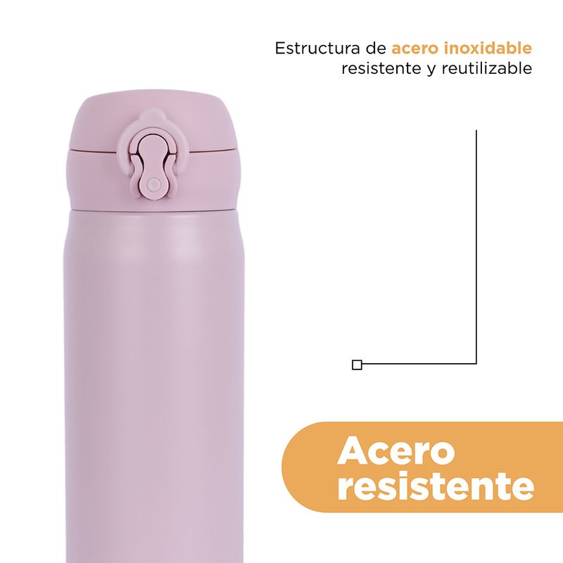 Termo con Tapa Abatible de 450 Ml Serie Miniso Rosa
