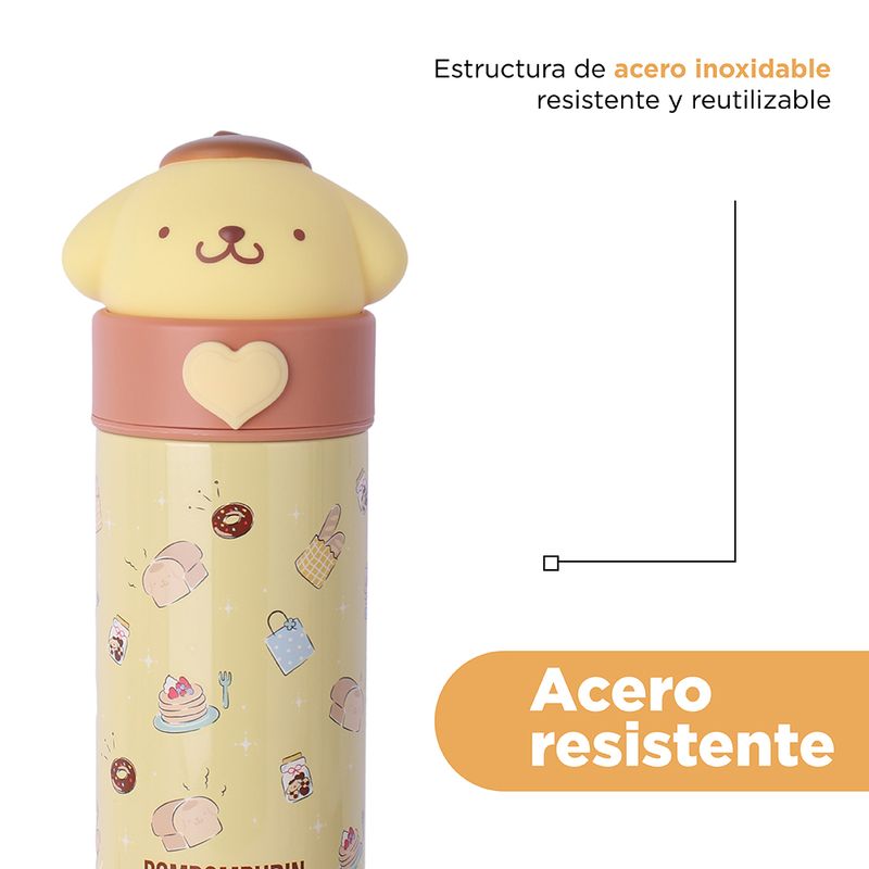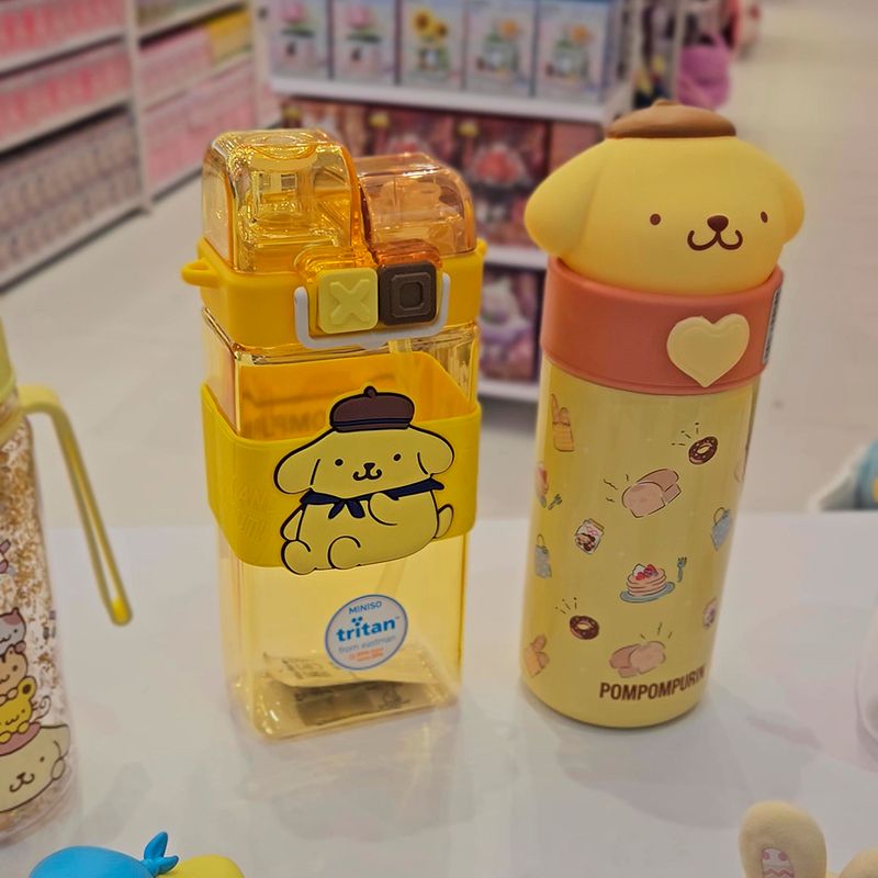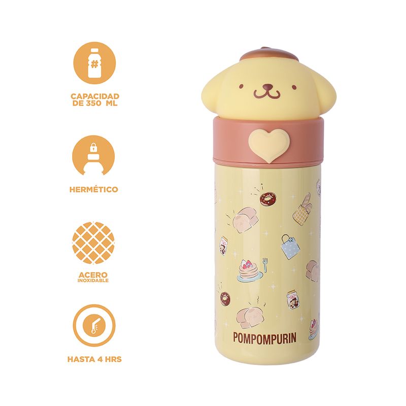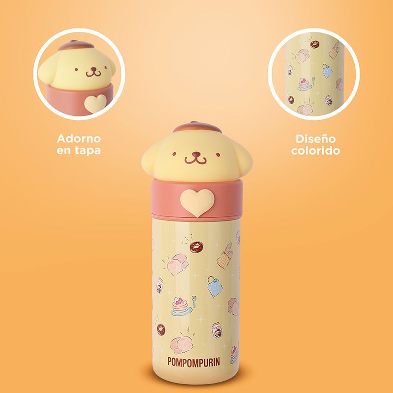 Miniso trae para ti Termo de 350 Ml Pompompurin Serie Sanrio Amarillo.Modo de uso:
