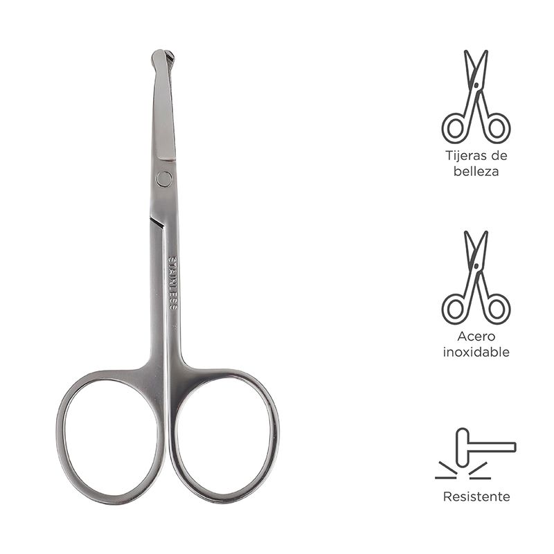 Tijeras Profesionales Para Cejas, Punta Redonda| Seguras de usar por su punta redonda. | Fácil de recortar el vello facial. | Hechas de acero inoxidable. | Con punta redondeada. | Funcionales y prácticas. Instrucciones de uso:
