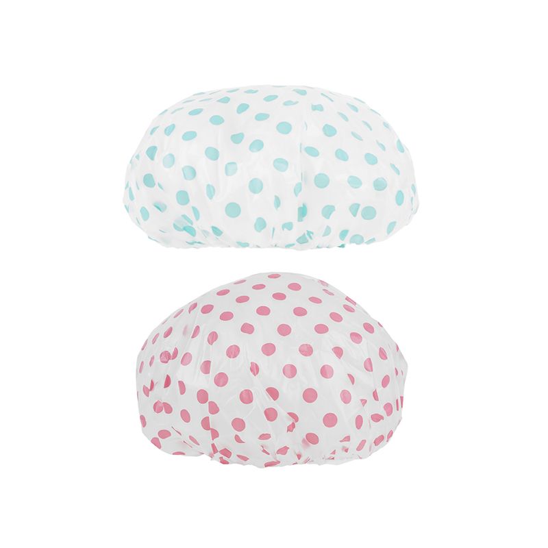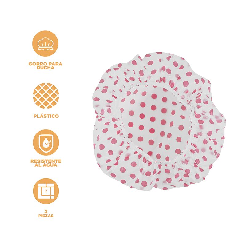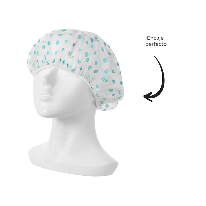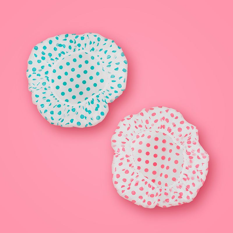 Gorro Para Cabello, A Prueba De Agua, Con Puntos, 2 Pzas Set de gorros de ducha impermeables. | Incluye 2 gorros. | Con diseño de puntos. | Detalle de pretina elástica en borde. | Ideales para cuando no quieras lavar tu cabello. Modo de uso: Recoger el cabello antes de tomar la ducha, poner el gorro para cubrir todo tu cabello.