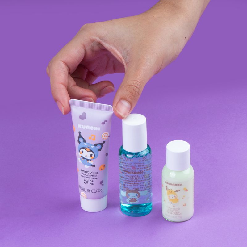 ¡Solo en Miniso encontraras los mejores artículos de la entrañable colección de Sanrio! Adquiere este increíble kit de cuidado facial ¡Todo lo que necesitas solo lo encuentras aquí! | Este increíble kit incluye 1 limpiador facial de aminoácidos (30 ml), 1 tónico de acido hialuronico (30ml) y 1 loción facial de acido hialuronico (20 ml). | MODO DE USO: Lava tu rostro con el limpiador facial, enjuaga con abundante agua y seca suavemente, después aplica con una algodón el tónico y finaliza con la loción de acido hialuronico. | Contiene 3 productos, ideales para llevar en tu neceser de viaje. | ¡Los mejores productos de cuidado facial solo los encuentras aquí en Miniso!.Instrucciones de uso: Después de limpiar tu rostro, aplica este producto en el rostro de manera uniforme y da golpecitos suaves hasta que se absorba. Precauciones y advertencias: Sólo para uso externo. Mantener fuera del alcance de los niños. Evitar contacto visual. Si se produce contacto, enjuague abundantemente con agua y comuníquese con su médico. Suspenda su uso si aparecen signos de irritación o erupciones. Sigue las instrucciones. Guardar en lugar fresco y seco. Evite la luz solar directa. Certificado Invima:NSOC21429-23CO/NSOC21439-23CO/NSOC21440-23CO