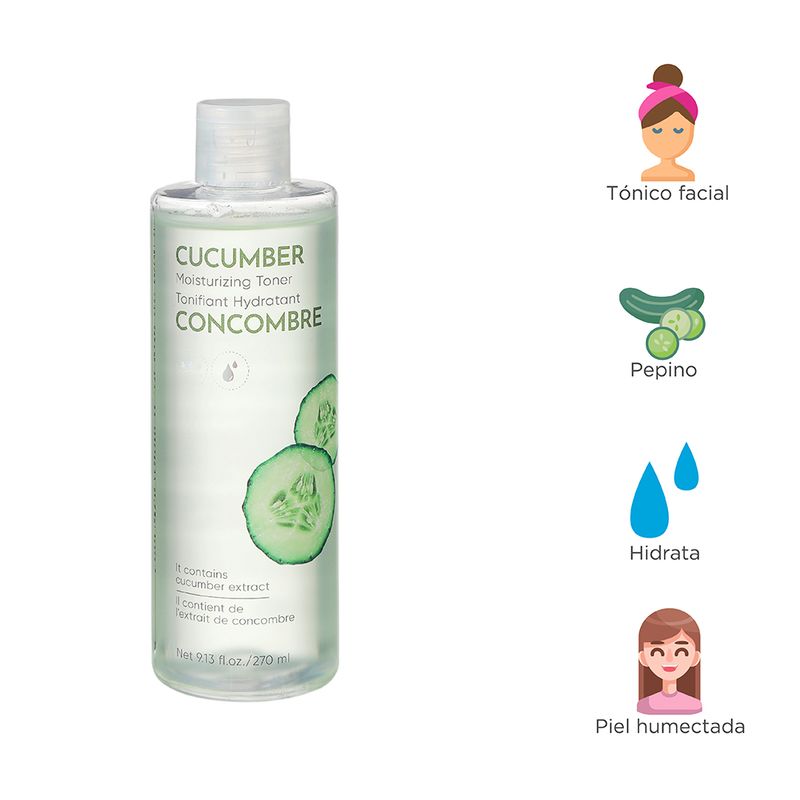Tónico facial humectante. | Con extractos naturales de pepino. | Mantén hidratada y humectada tu piel. | Úsalo después de lavar tu rostro. | Aplícalo con un algodón en ligeros toques sobre tu piel. Certificado Invima: