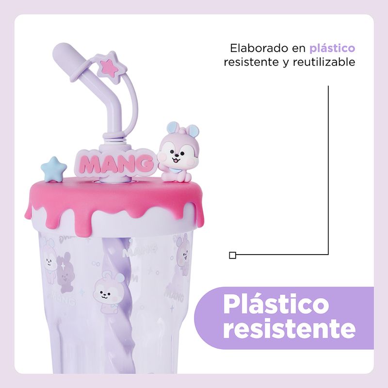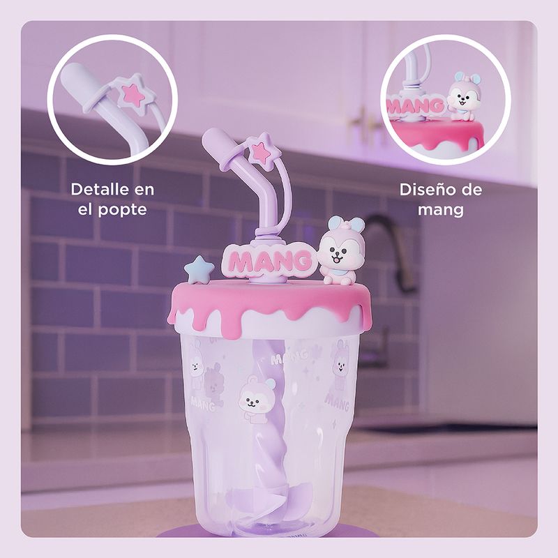 Miniso se une a la fiebre de BT21 para su fiel fandom Army ¡Forma parte del universtar de BT21 que representa perfectamente el espíritu de cada uno de los integrantes de esta gran BangTan! ¡I purple you! | ¡Adquiere este lindo vaso de Mang! ¡El pony bailarín enmascarado del planeta BT! Esta vez en su presentación baby ¡Lo vas adorar! Elaborado en plástico de alta resistencia y gran durabilidad. | Te otorga un diseño en tonalidad lila con detalles estampados a contraste, figura en 3D y tapa enroscable para un cierre seguro con detalle de orificio para popote (este viene incluido con punta mezcladora). | Capacidad 560 ml. Ligero y fácil de portar. | ¡Lo mejor del universtar solo lo encontraras aquí en Miniso! ¡Mantente hidratado y disfruta de tus bebidas favoritas a donde quiera que vayas!