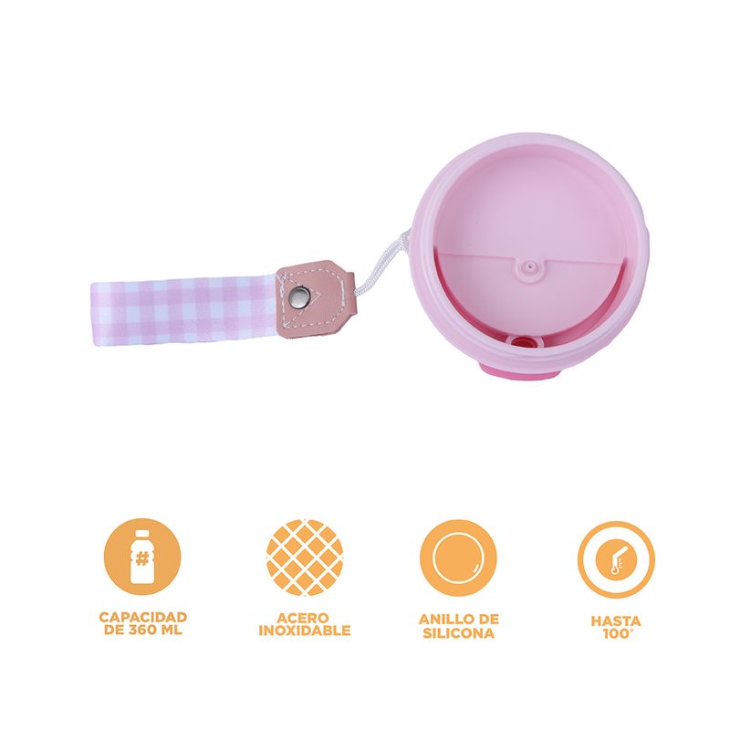 Miniso Trae para ti este Lindo Vaso de 360Ml en Acero con Correa Serie Mikko Cammy.Instrucciones de uso: