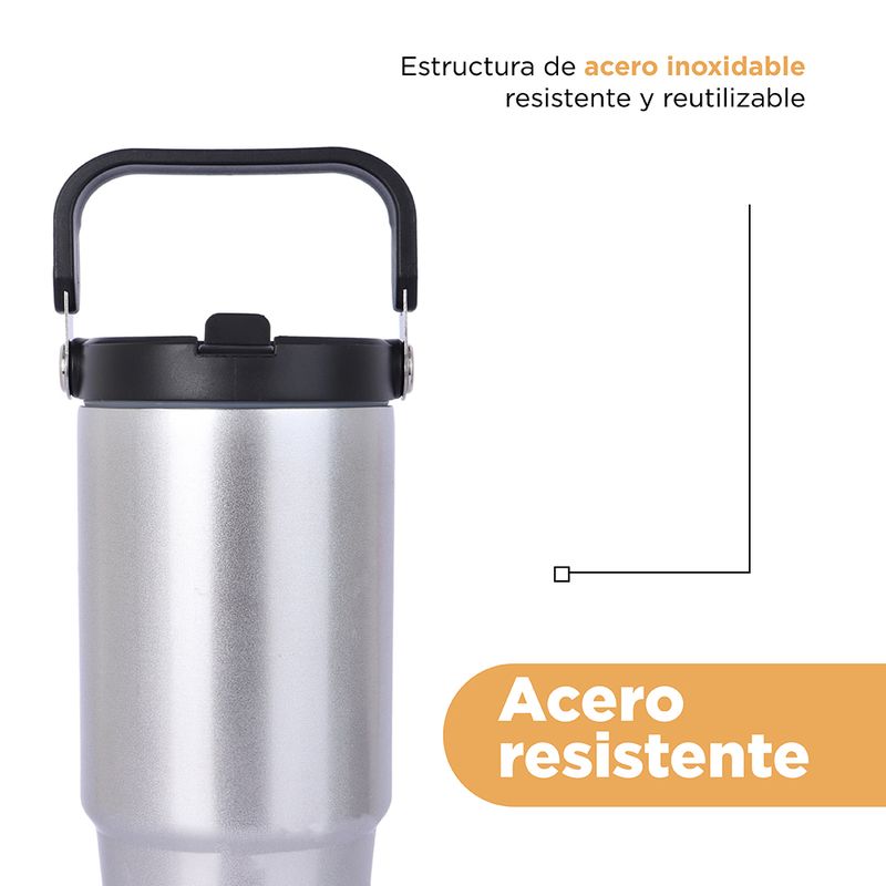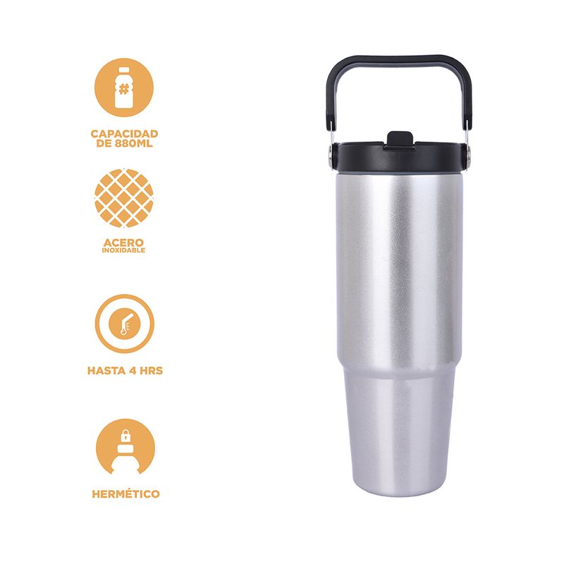 Vaso de Acero con Asa 880Ml Serie Silver Gray