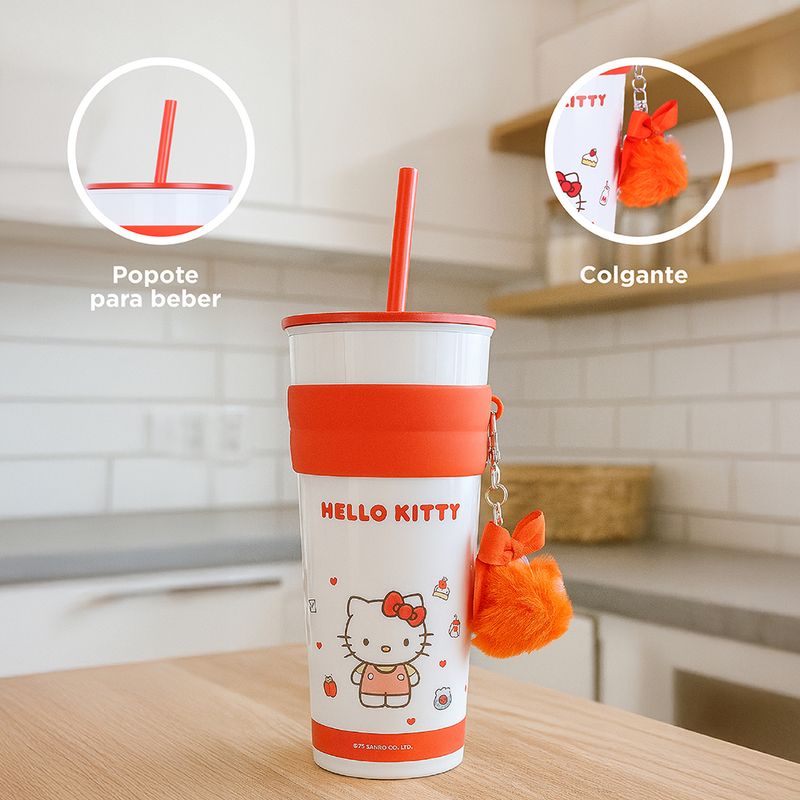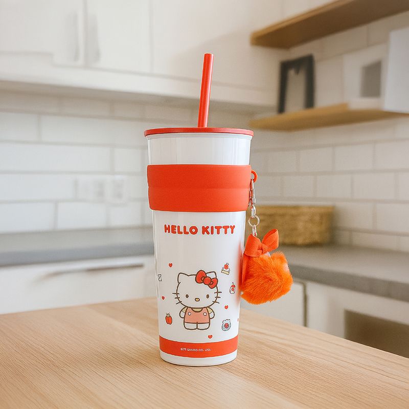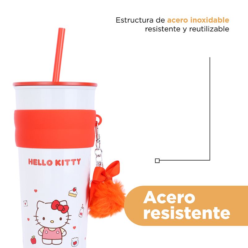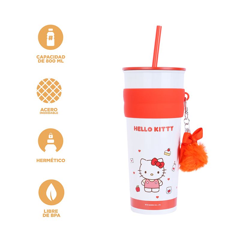 Miniso trae para ti este lindo Vaso de Acero con Colgante y Pitillo de 800 Ml Hello Kitty Serie Sanrio.Modo de uso: