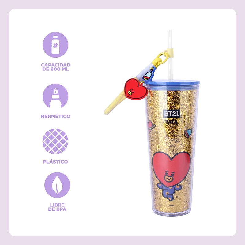 Miniso trae para ti este lindo Vaso Plastico de Doble Pared con Pitillo 800 Ml Tata Serie Bt21.Instrucciones de uso: